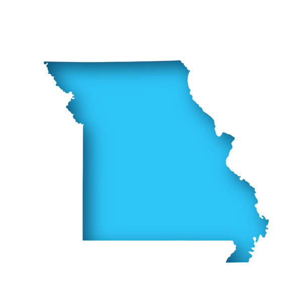 Missouri Map White Paper Cut Out On Blue Background Stock